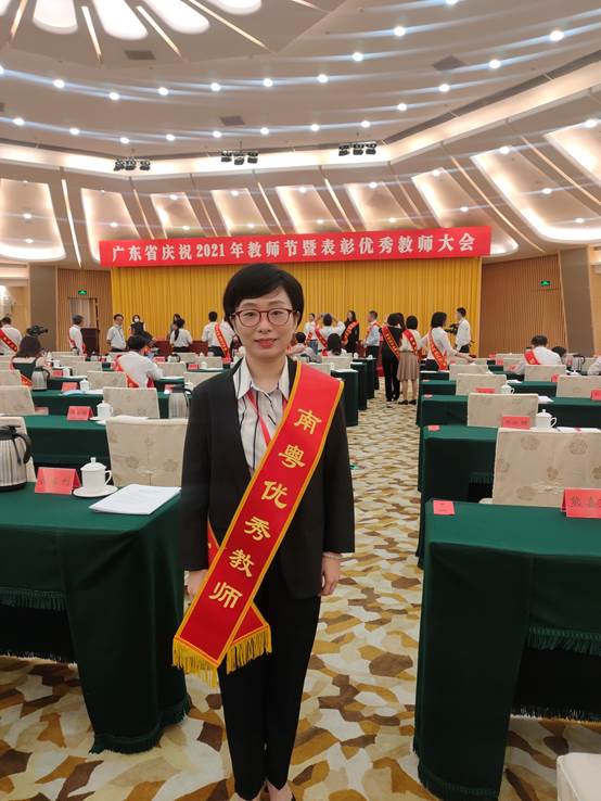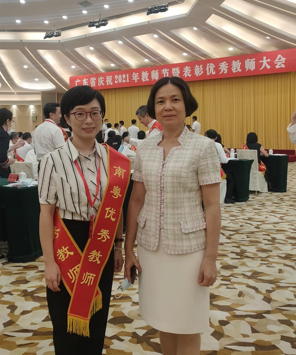 9月9日上午,广东省召开庆祝2021年教师节暨表彰优秀教师大会,会议宣读了中共广东省委教育工委、广东省教育厅、广东省人力资源和社会保障厅、广东省总工会印发的《关于表彰南粤优秀教师、南粤优秀教育工作者的决定》,我校陈晓岚老师喜获“南粤优秀教师”荣誉称号,陈景春、隆艳老师喜获“南粤优秀教育工作者”荣誉称号。王宜奋副校长受邀出席会议,陈晓岚老师作为我校教师代表在会上接受表彰。