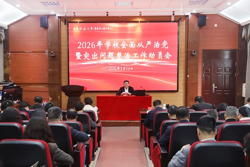 3月10日,学校召开2026年全面从严治党工作暨突出问题整治工作动员会,党委书记幸小涛主持会议,并作2026年全面从严治党工作报告和学校突出问题整治工作动员,党委副书记、校长刘文清出席会议并传达上级有关会议精神,党委委员、纪委书记、省监委驻学校监察专员江晓铃作学校2026年党风廉政建设工作报告。党委委员、副校长丁晋清、宋波出席会议,各党总支书记、党支部书记,全体中层干部、正高职称人员参加会议。