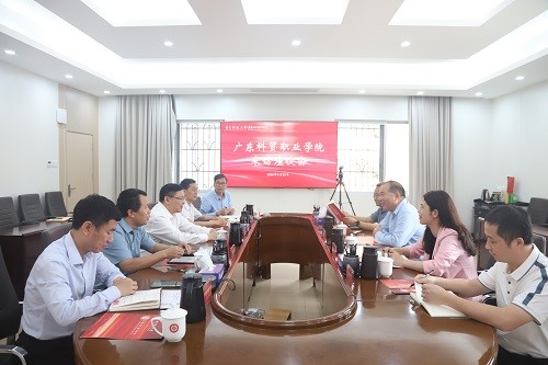 3月30日,广东科贸职业学院党委书记杜方敏带队来校调研,与学校党委书记幸小涛围绕深入贯彻职业教育高质量发展要求,就继续教育办学经验、优化管理体系建设等深入交流,共同探索职业院校继续教育高质量发展新路径。广东科贸职业学院党委委员、副校长梁艳珍出席座谈。